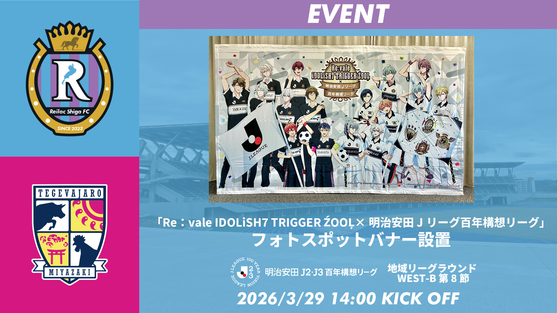 【3/29 宮崎戦】「Re:vale IDOLiSH7 TRIGGER ŹOOĻ×明治安田Jリーグ百年構想リーグ」フォトスポットバナー設置!